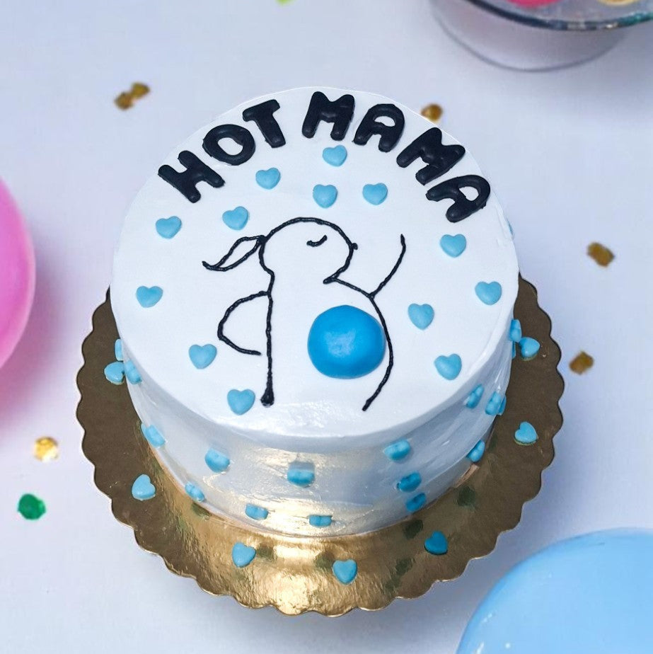 Bebek heyecanınıza lezzet katacak bu özel tasarım pastayla sevdiklerinize cinsiyet haberini duyurmanın en tatlı yolu! 💙 Üzerinde "Hot Mama" yazısı ve eğlenceli figürüyle hem şık hem de anlamlı bir sunum sunuyor.