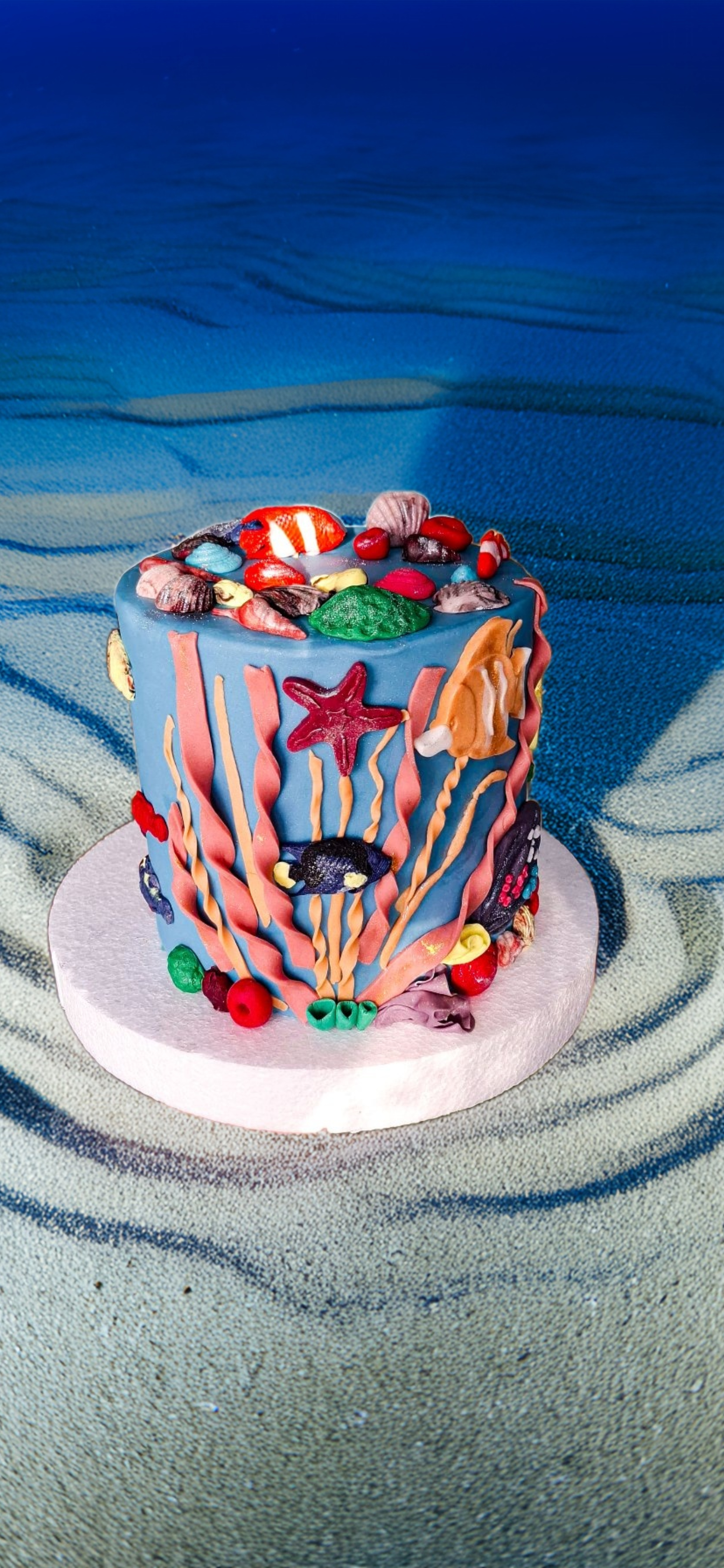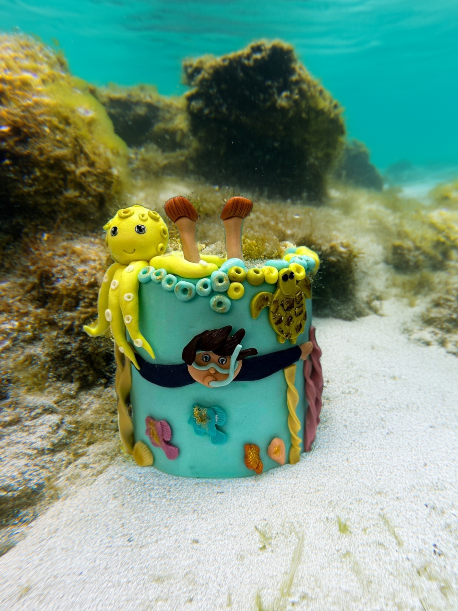 - Süslemeler: Ahtapot figürü, denizatı figürü, deniz kabukları, deniz yıldızları, sevimli balık figürleri, yosun ve mercan detayları, lacivert "3" rakamı
