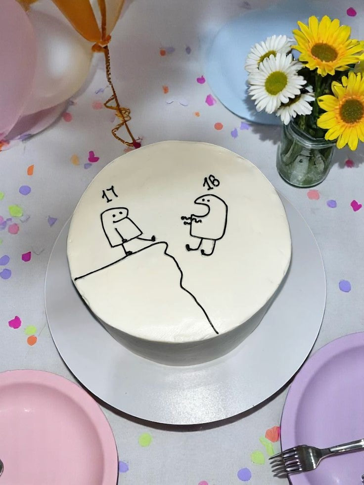 Pastanın üzerindeki basit ama etkili çizimde, 17 yaşındaki figür rahat bir şekilde otururken, 18 yaşındaki figür elinde anahtarlarla heyecanlı bir bekleyiş içinde. Bu esprili sahne, yaş almanın getirdiği küçük değişikliklere gönderme yapıyor ve doğum günü kutlamasına neşeli bir hava katıyor.